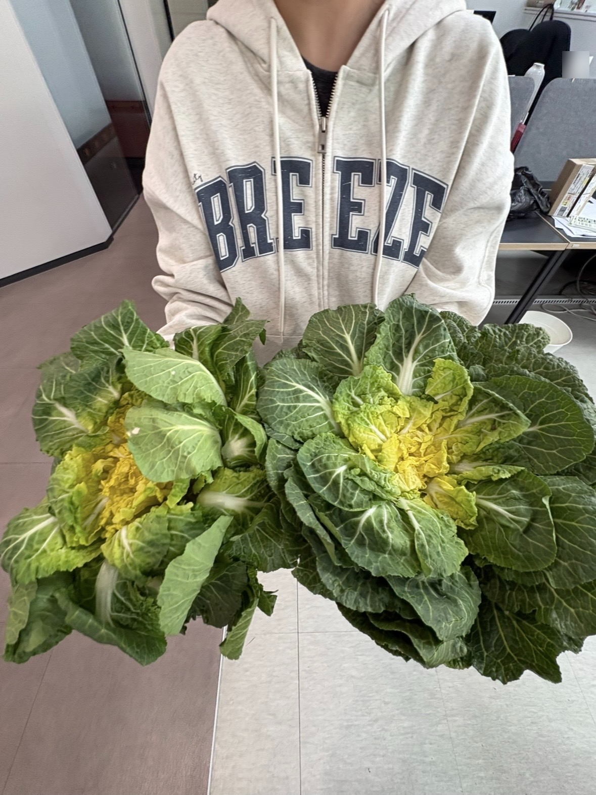 오후만 되어도 동네 청과물 가게에 봄동이 동나는 통에, 출근길에 봄동을 사 들고 출근하기도 했어요. 봄동이 워낙 인기라 1kg에 3,000원 정도 하던 게 4,000원까지 올랐다고 하더라고요! (에디터는 5,000원에 산 건 비밀이에요..) |