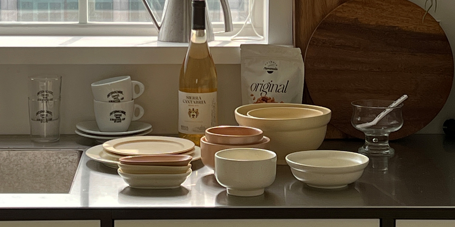 이승민 대표가 처음부터 그릇 브랜드를 만들었던 건 아니에요. 수입 주방용품을 들여오다 차별점이 없다는 걸 느끼고 이천 도자기 산지를 직접 발품 팔아 다니기 시작했고, 입소문을 타면서 자연스럽게 자체 제작으로 이어졌어요. 지금은 100여 종이 넘는 상품군을 선보이고 있어요. |